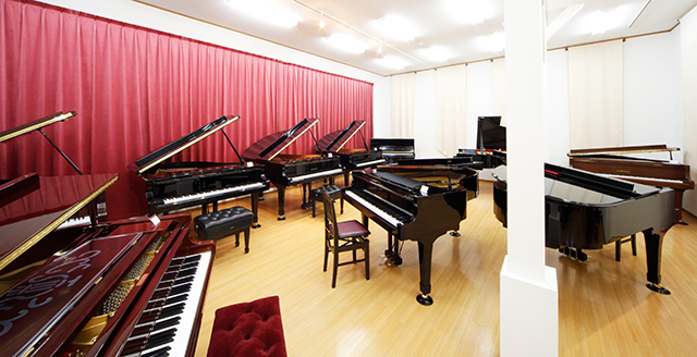 グランドピアノ専門のショールーム「グランドピアノ館」では、ゆったりとしたフロアでご納得いくまで試弾が可能です。